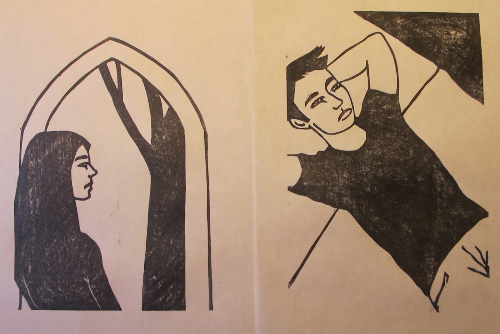 In verità di quella del fanciullo ho anche terminato i blocchi colore, ma mica posso svelarvi tutto in un post, che lenta come sono non avrei altro da farvi vedere per il resto della settimana (e poi considerato che i colori saranno gli stessi per tutte e tre le tavole non é che ci sia molto da svelare) mentre la fanciulla è fresca fresca finita questa mattina, dopo pranzo ho intenzione di intagliare i tre blocchi colore e magari riuscire a fare qualche prova di stampa. Anche se il key-block va raffinato ancora un po', le linee sono molto più grossolane dell'altra.