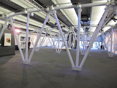 Oltretutto mi pareva una bella scusa per visitare una zona di Londra che non conoscevo affatto, e perché no, per assaggiare il famosissimo (come dicono loro) salmone di Forman's. Allora, il salmone in effetti è stato proprio buono e la vista su Regent's Canal davvero bella (va beh, oltre al canale c'era anche tutta la parte dello stadio olimpico in costruzione che non era proprio una meraviglia ma basta accontentarsi) per nulla dire sullo spazio espositivo davvero incredibile. E la mostra? Molto molto molto bella, una varietà di lavori interessanti alcuni che mi sono piaciuti davvero tanto. Qui di seguito qualche foto, ma considerate che a parte qualcuna scattata dal marito le altre sono quasi peggio del solito che ero davvero distratta dalle opere! Tra l'altro mi scuso in anticipo ma furbamente ho fatto un po' di confusione e non ho neanche tutti i nomi degli autori che mi sono piaciuti di più.. Mi cospargo il capo di cenere, abbiate pazienza!