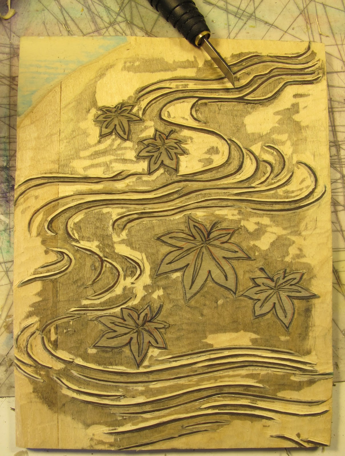 Per la stampa del Keyblock ho poi deciso di utilizzare invece dell'inchiostro sumi acquistato recentemente, una qualità diversa, da calligrafia, che avevo acquistato nel mio primo viaggio in Giappone. Come potete vedere il nero è molto più delicato e meno coprente e mi sembrava molto più adatto a questa stampa.