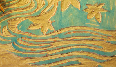 Oggi ho intagliato, sta sera metto a inumidire la carta così domani un po' di rifiniture ai blocchi e poi prove di stampa. Quattro blocchi e quattro colori, non dovrebbe essere nulla di troppo complicato da stampare anche se l'intaglio mi ha un po' fatto sudare oggi! Ho finalmente utilizzato il legno ordinato un sacco di tempo da su McClain, lo Shina da 9 mm ed è un piacere da intagliare.
