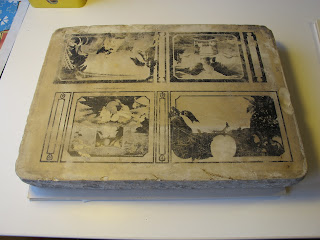 E alla fine poggio sopra un peso. Io utilizzo questa pietra da litografia trovata in un mercatino dell'antiquariato e comprata senza davvero sapere cosa farne, è del peso e della grandezza giusta per le stampe che sto facendo al momento.