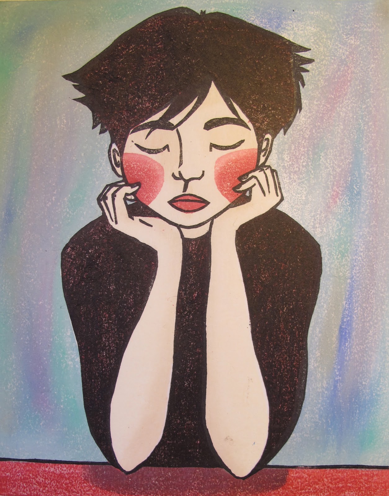 Sulla stampa in se' non c'è molto da dire, è fatta sulla scia dell'altra, questa volta però solo 4 blocchi, e anche qui nella foto non si vedono proprio le sfumature della carnagione... a mia discolpa questa volta oltre alla mia normale incapacità, il fatto che la foto è stata fatta la sera tardi con poca luce e un po' di fretta prima di incorniciarla : )