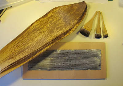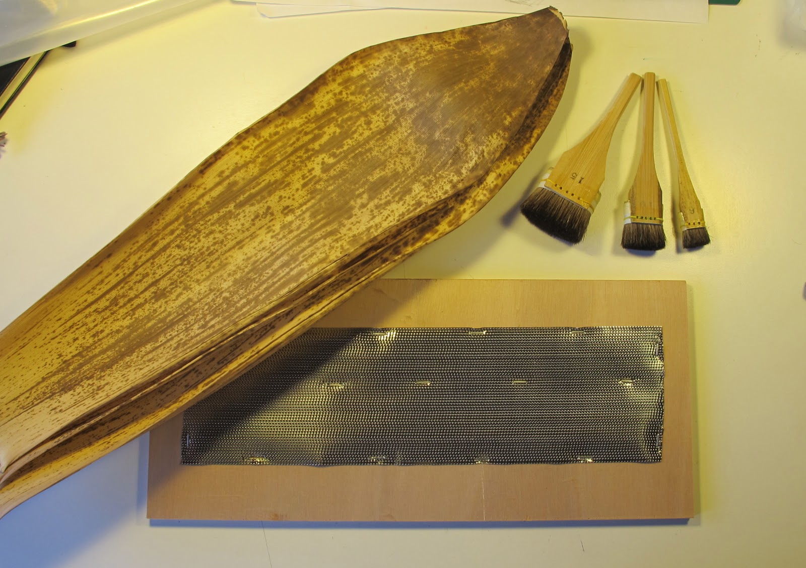 Dragon skin (che Paul mi aveva detto essere indispensabile per ripristinare i pennelli e che è decisamente più ambientalmente corretta rispetto alla tradizionale pelle di squalo) e qualche foglia di