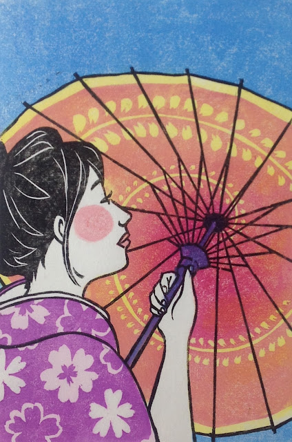 La stampa con il fanciullo avrà praticamente gli stessi colori dell'altra (a parte i capelli) per cui spero che una volta finito di intagliare i restanti blocchi mi sarò decisa quali colori utilizzare!