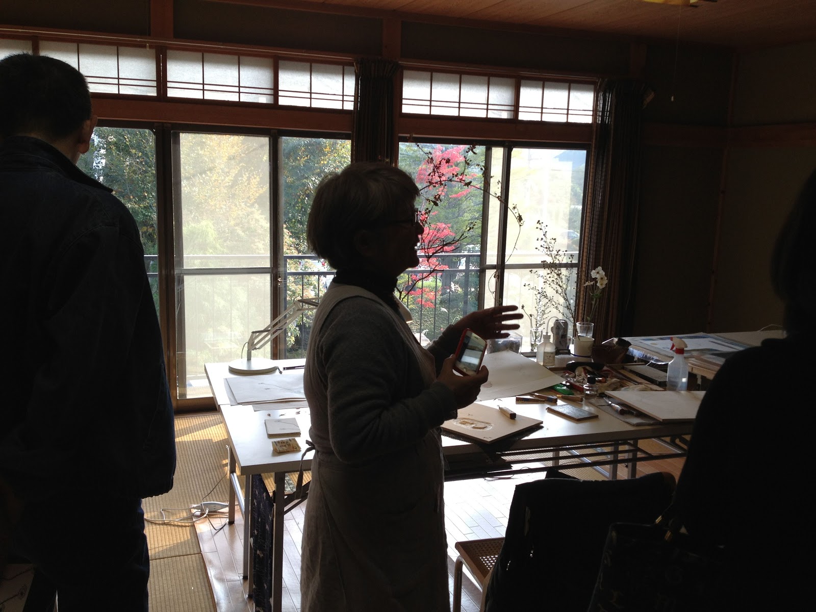 dal momento che sto ancora finendo di preparare il post sul workshop di byobu, e che nel frattempo in genere passo il tempo a stampare, eccovi qualche foto dell'open studio di sabato; l'occasione serve in genere ai vicini curiosi per venire a vedere cosa fanno effettivamente questi strani personaggi non giapponesi che si aggirano nel quartiere, e ovviamente ad amanti e conoscitori per sapere un po' di più degli artisti e del loro lavoro.