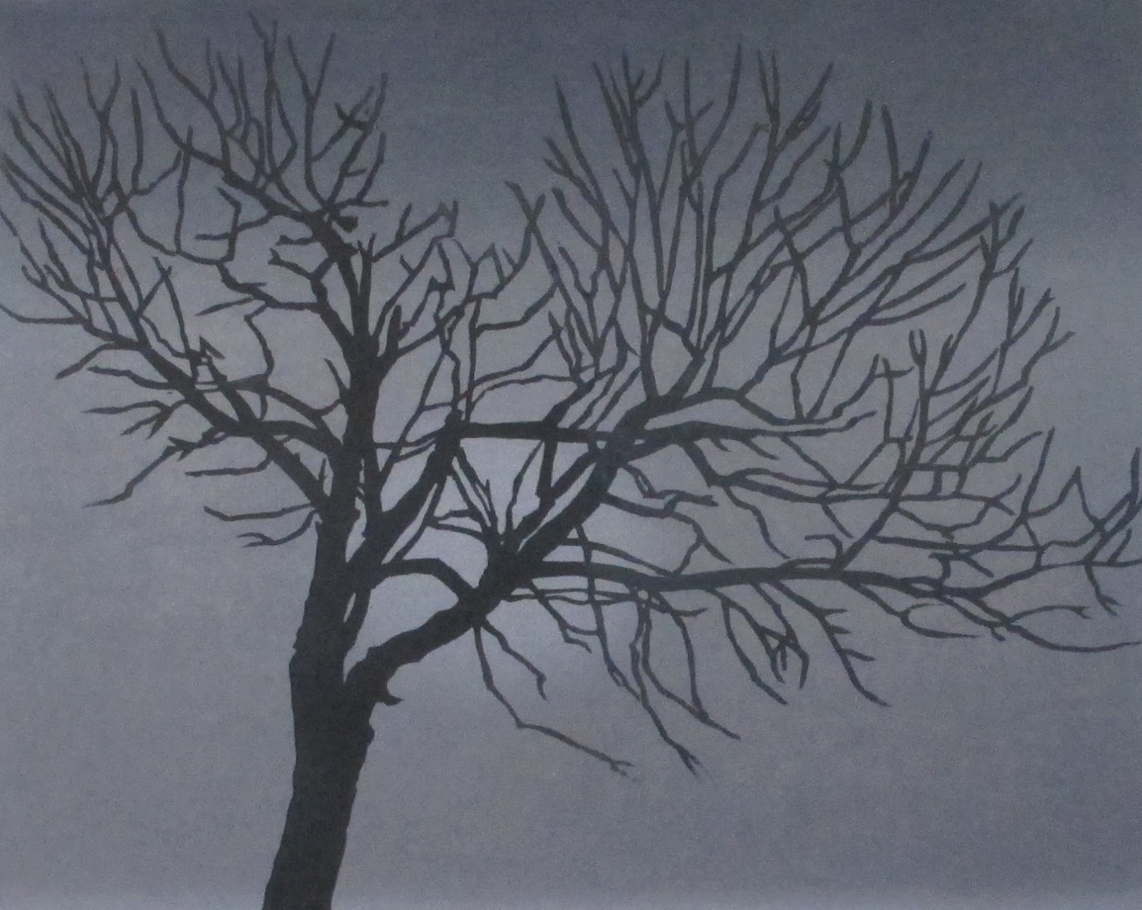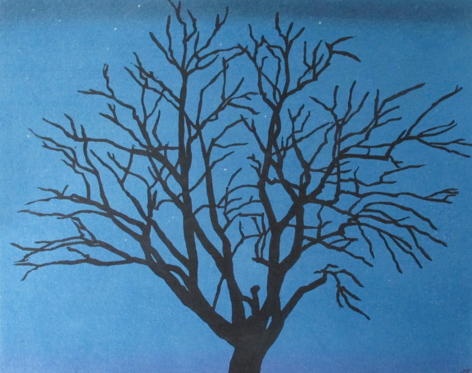 Anche per queste due niente di particolare: due blocchi uno per l'albero e uno per lo sfondo.. del primo però sono particolarmente soddisfatta... lo sfondo era esattamente quello che avevo in mente quando ho iniziato a stampare, e mai stampa fu più facile da finire.. semplicemente 4 (a volte però ne ho anche fatti 5) passaggi per ottenere uno sfondo abbastanza intenso che mi piacesse, e 2 passaggi per l'albero per avere la parte centrale del tronco di un bel nero intenso.