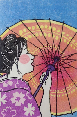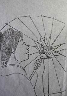 5: stampa del kimono e dell'ombra del manico dell'ombrello: