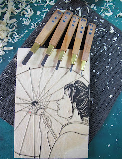 Asporto tutto lo sfondo e quello che non voglio si veda in stampa con dei coltelli piatti di diverse dimensioni (aisuki).
